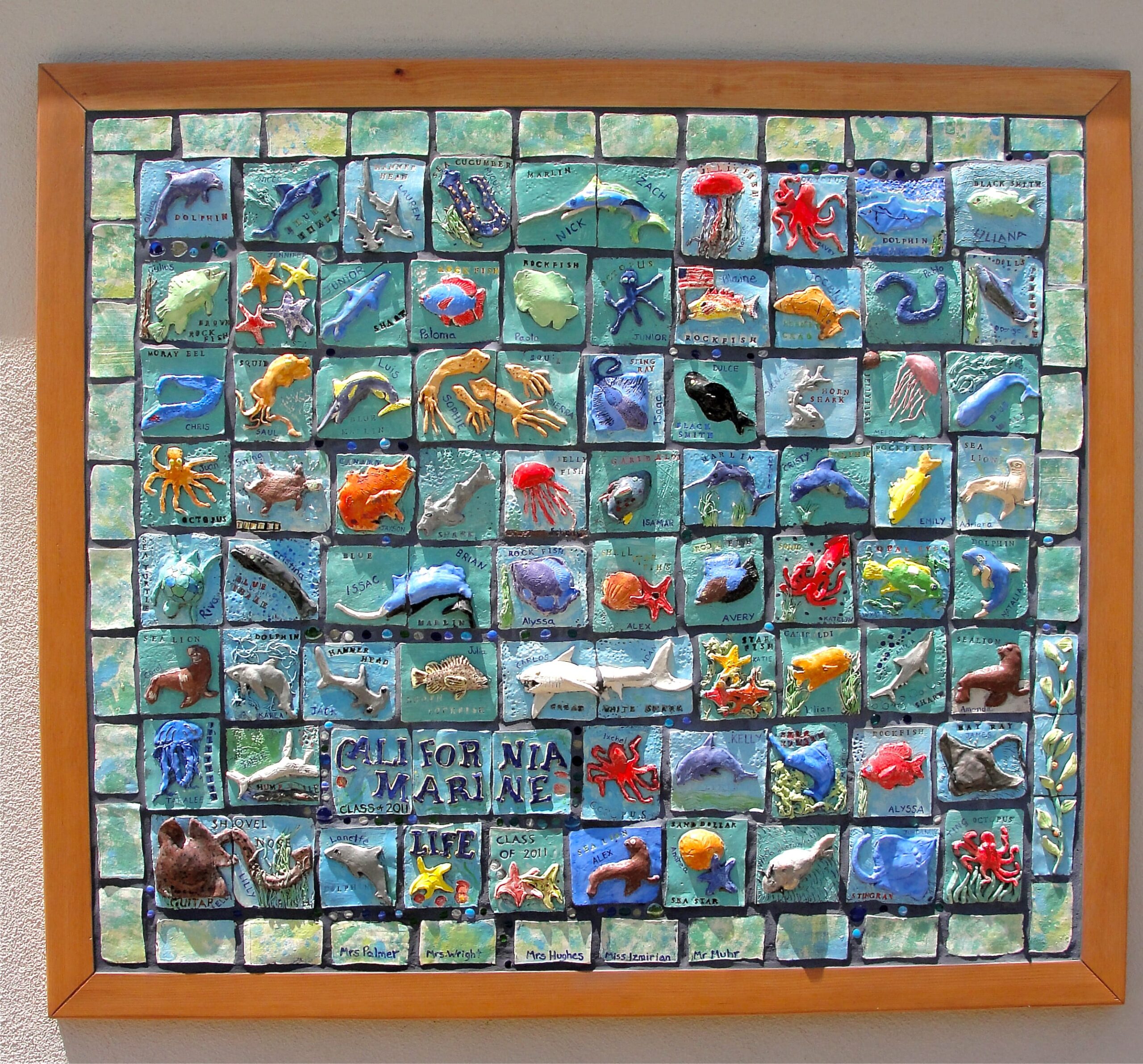 California Marine Life ceramic tile mural: collaborative art project for kids