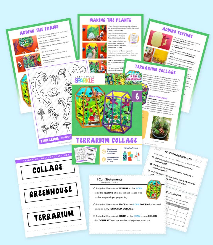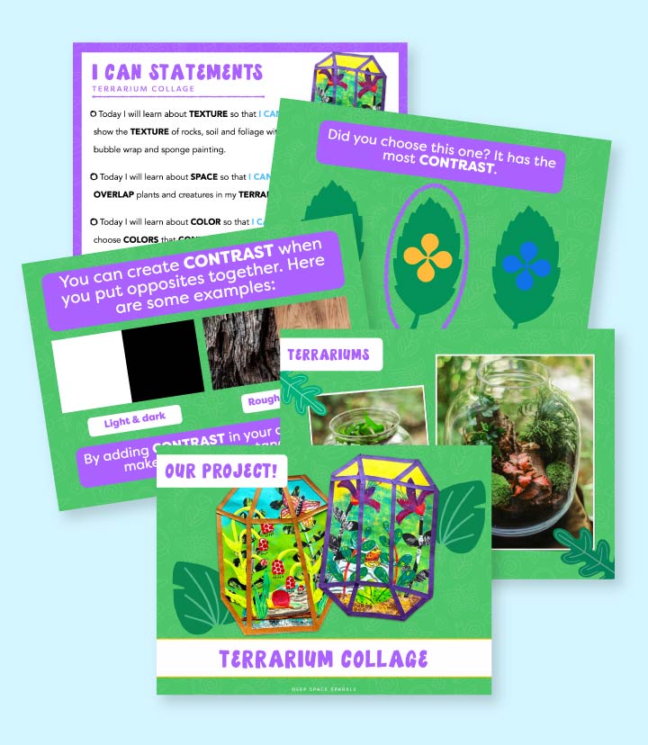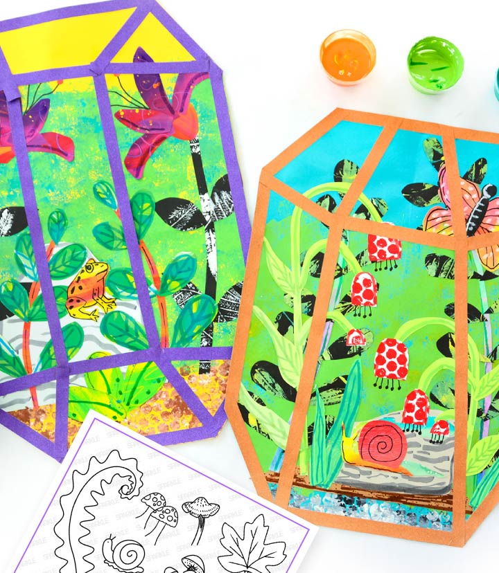 This terrarium collage offers lots of opportunities for artistic choice and expression and introduces the concepts of space and texture beautifully.